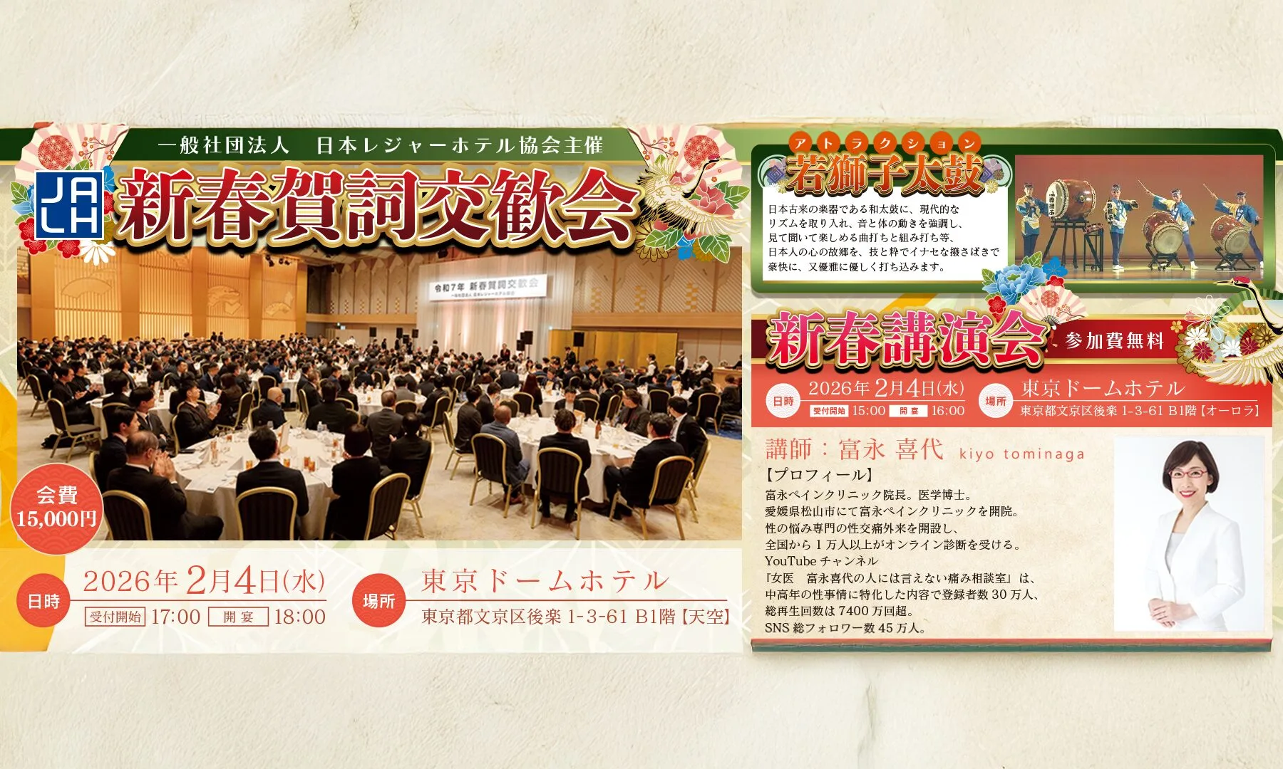 当協会は、昭和48年7月に厚生労働省の管轄団体として設立され、以来50年以上にわたって、レジャーホテル業界の健全な発展のための活動を続けてまいりました。