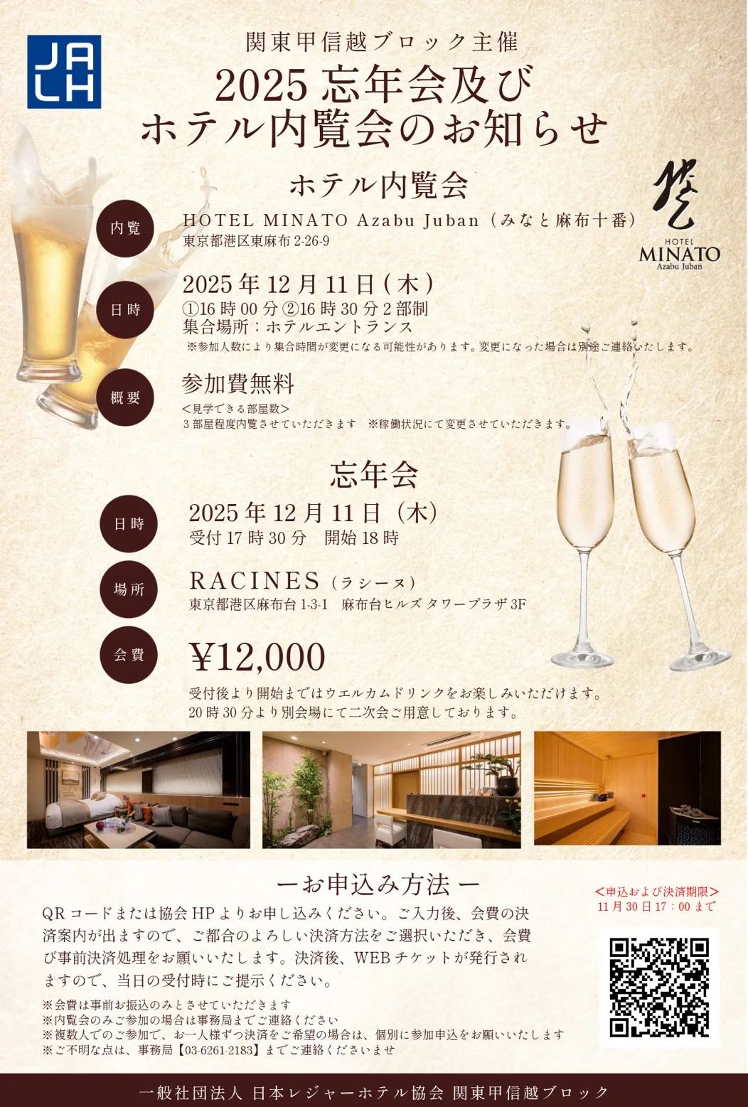 【関東甲信越ブロック】忘年会およびホテル内覧会のご案内