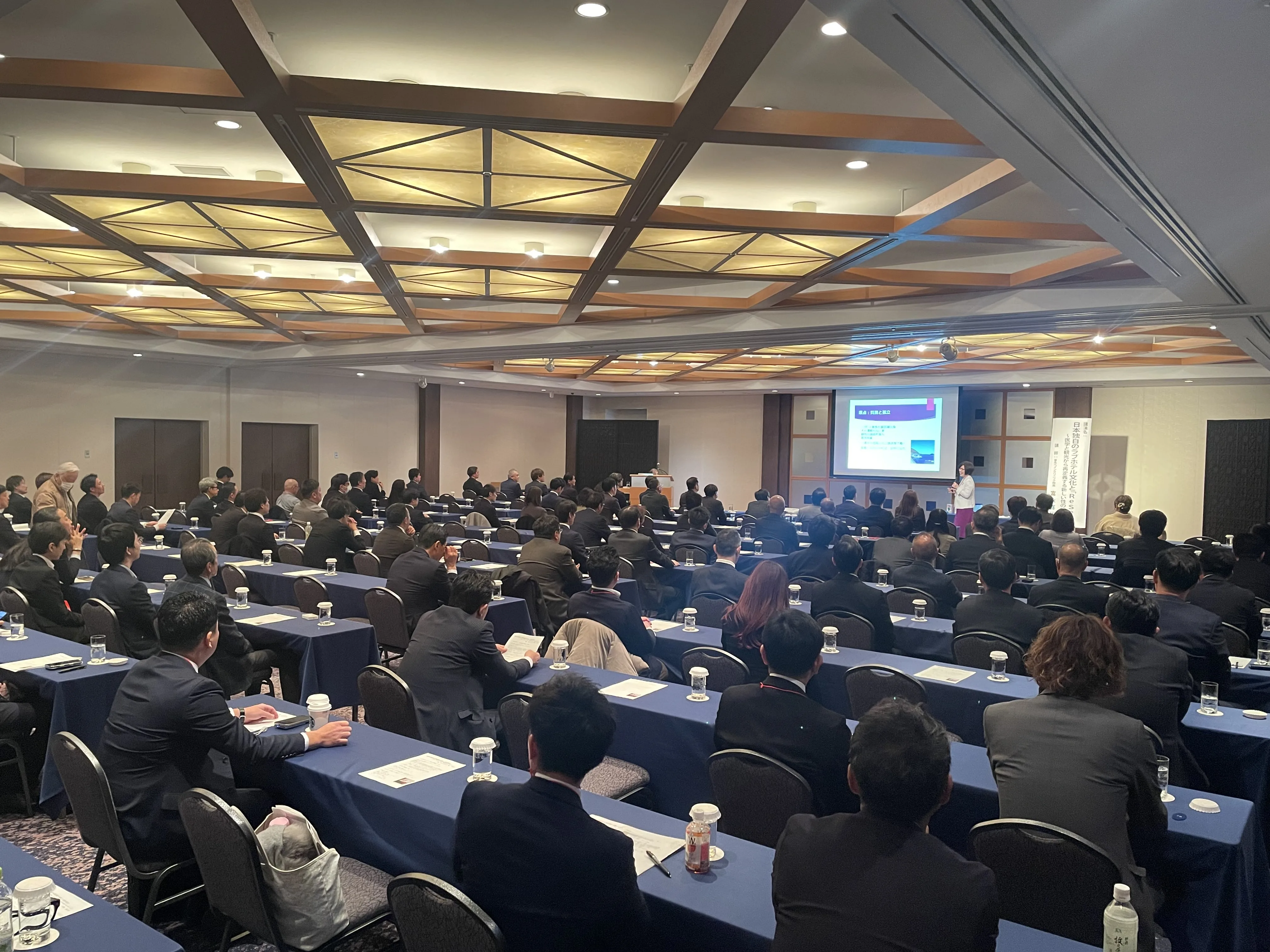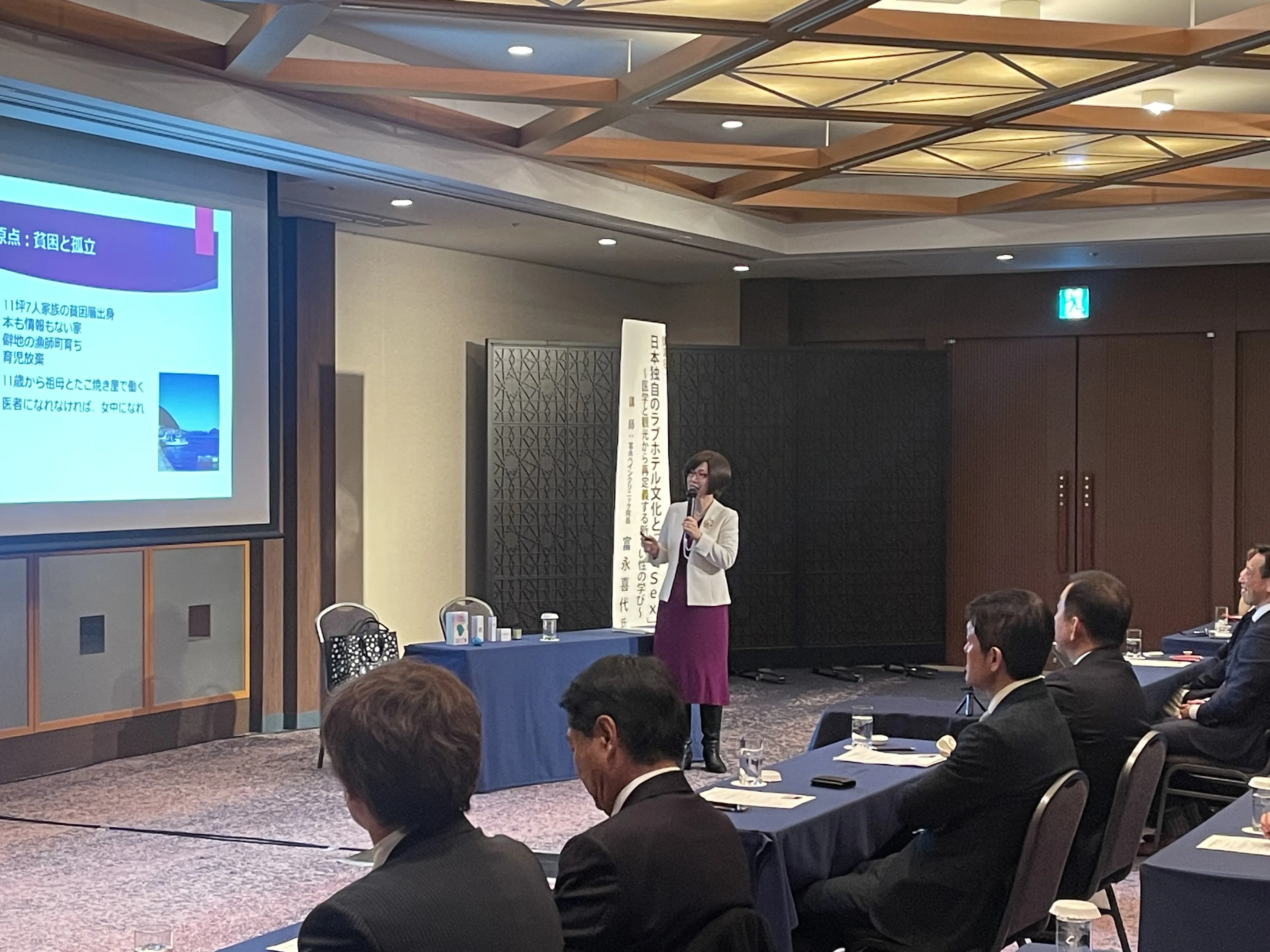 新春講演会では、富永ペインクリニック院長・医学博士の富永喜代先生を講師にお迎えし、「日本独自のラブホテル文化と「ReSex」~医学と観光から再定義する新しい性の学び〜」と題し、ご講演頂きました。講演では、ラブホテルは「泊まって休んで終わり」の場所ではなく、日本文化を体験し、心と体を回復し、その価値を持ち帰ることが出来る空間であること、そして日本でいちばん人を元気にする産業であるレジャーホテル業は誇りをもつべき存在である、という力強いメッセージが語られました。レジャーホテル業を営む私達にとって、新しい価値観と前向きで明るい未来を感じさせる内容となり、ご参加頂いた方からも大変ご好評を頂きました。